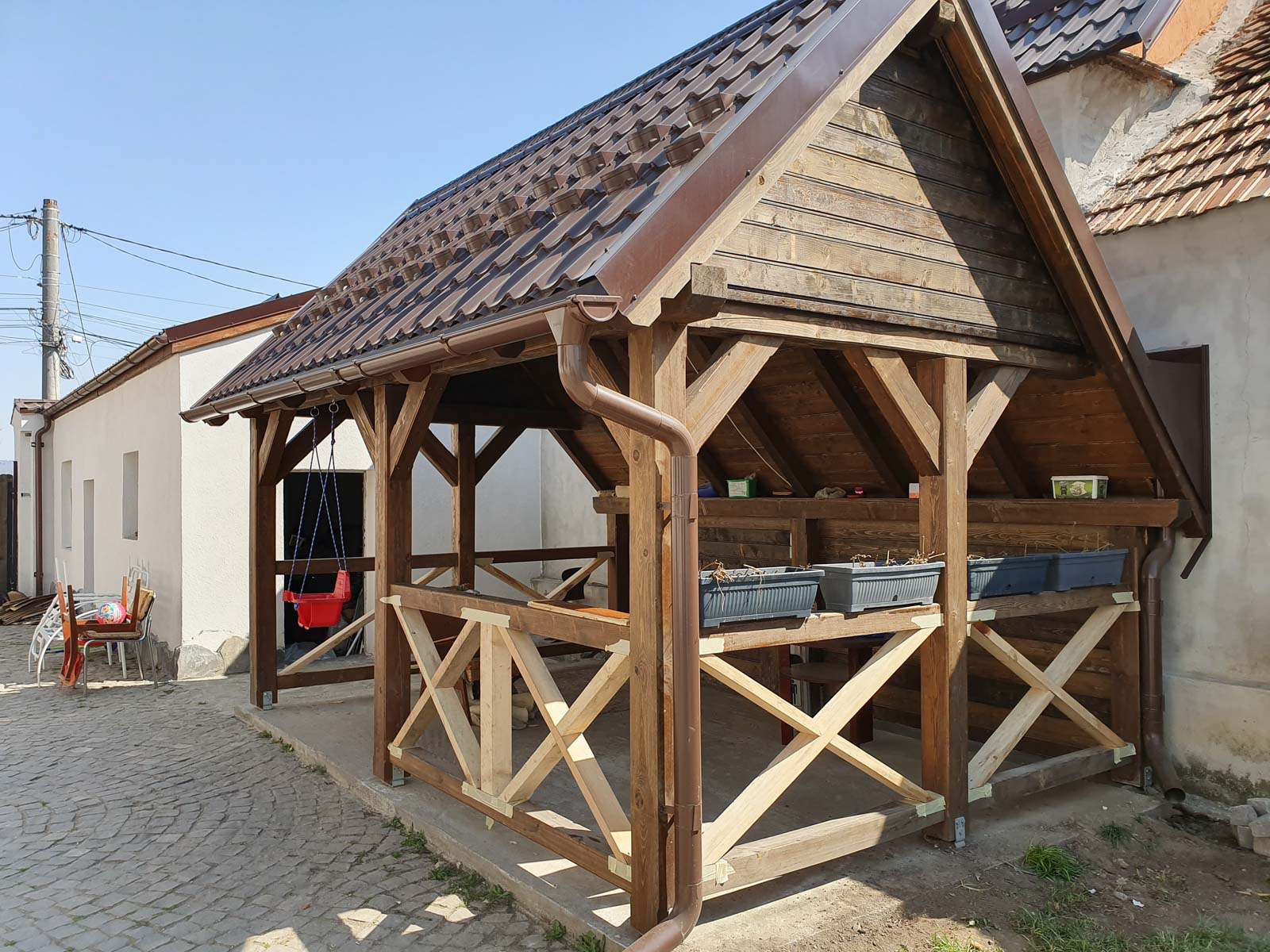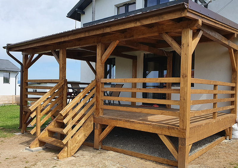 Am început în special cu lucrări mari realizate după particularitățile locului și al beneficiarilor (case, acoperișuri, terase acoperite). Avem proiecte finalizate și asigurăm consultanță, materiale și implementare finală.
